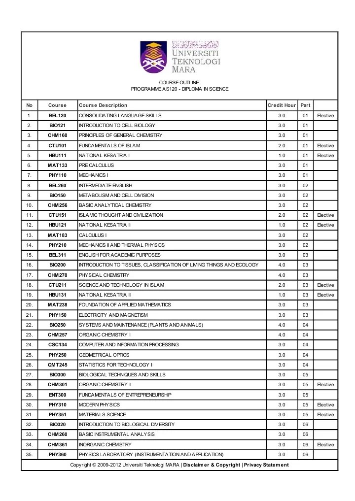Diploma Sains Uitm Course Outline / Diploma Sains As120